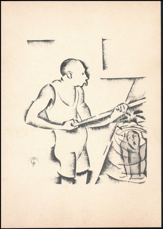 Molnár C. Pál (1894-1981): Úszómester. Ofszet, papír, 29,5×21 cm https://www.darabanth.com/hu/374-Gyorsarveres/374.0/Festmenyek-es-grafikak/Festmenyek-es-grafikak~1/Molnar-C-Pal-1894-1981-Uszomester-Ofszet-papir-29-5C39721-cm~II2190441
