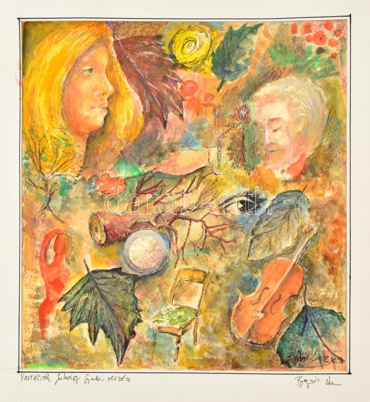 Leírás: Olvashatatlan jelzéssel: Variációk Juhász Gyula versére. Akvarell, papír, 30×28 cm