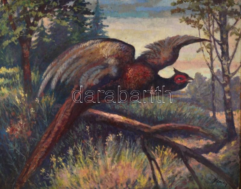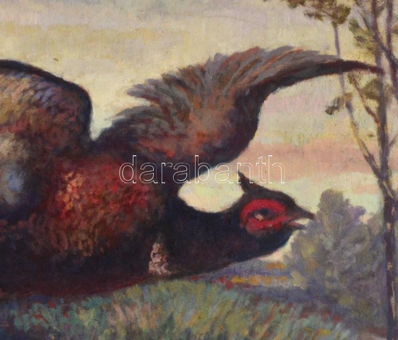 Leírás: Remsey jelzéssel: Fajdkakas. Olaj, farost, fa keretben, 70x90 cm
