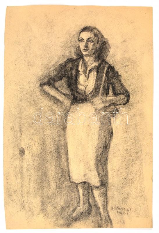 Leírás: Rudnay jelzéssel: Hölgy. Szén, papír, 43,5x29 cm