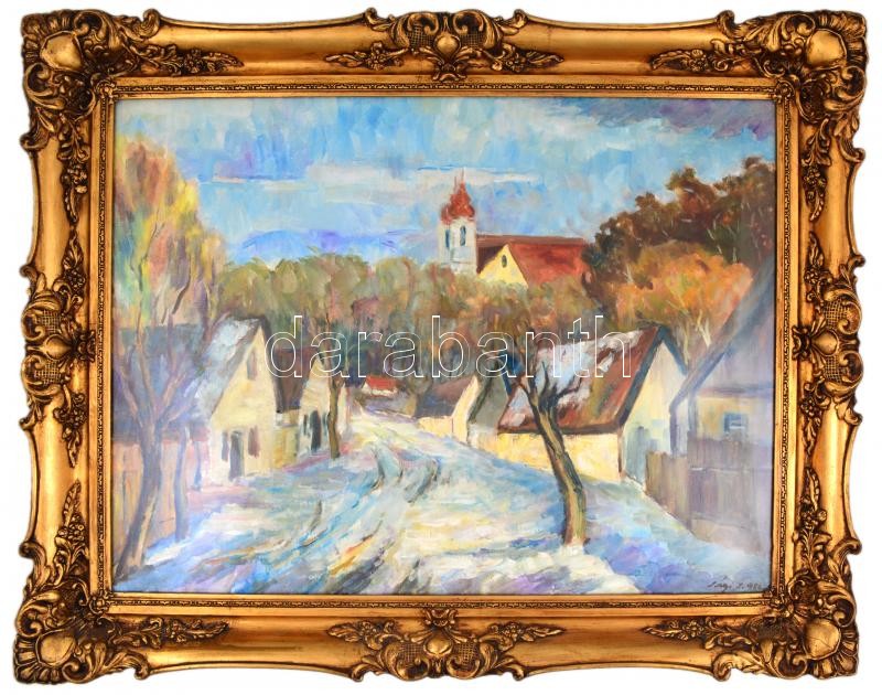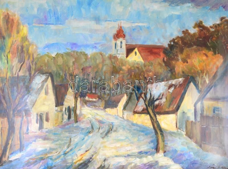 Leírás: Sági Sándor (1917-2007): Balaton-melléki falu. Olaj, vászon. Jelzett. Üvegezett keretben. 60x80 cm