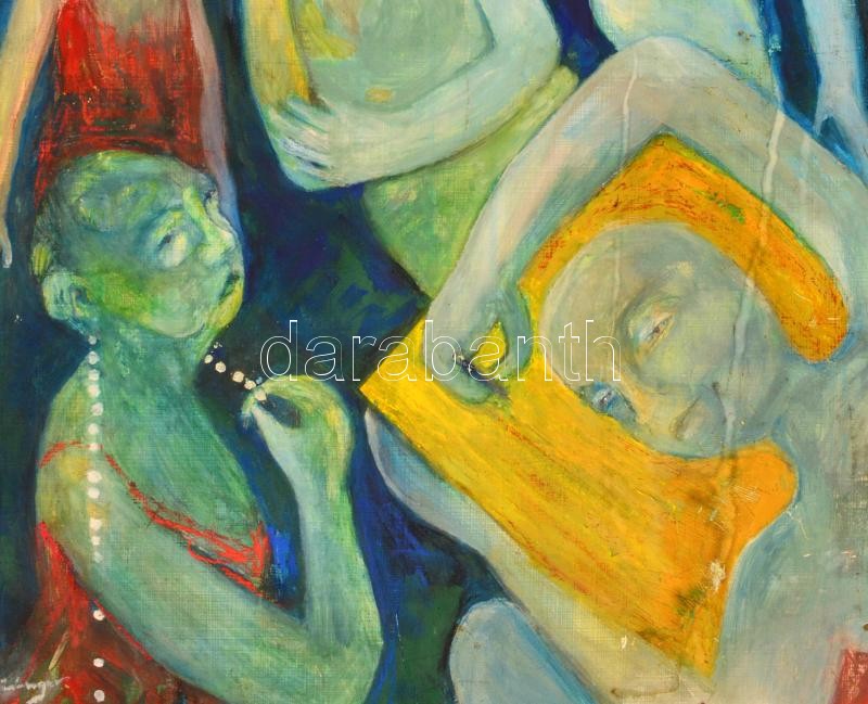 Leírás: Schönberger jelzéssel: Alakok. Olaj, farost, kissé sérült, 80x61 cm