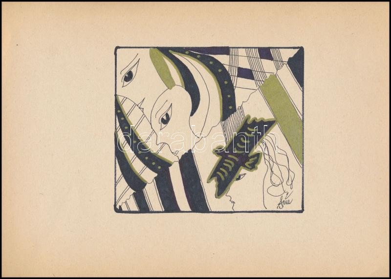 Leírás: Szász jelzéssel: Szemek. Tus, filctoll, papír, 13x14 cm