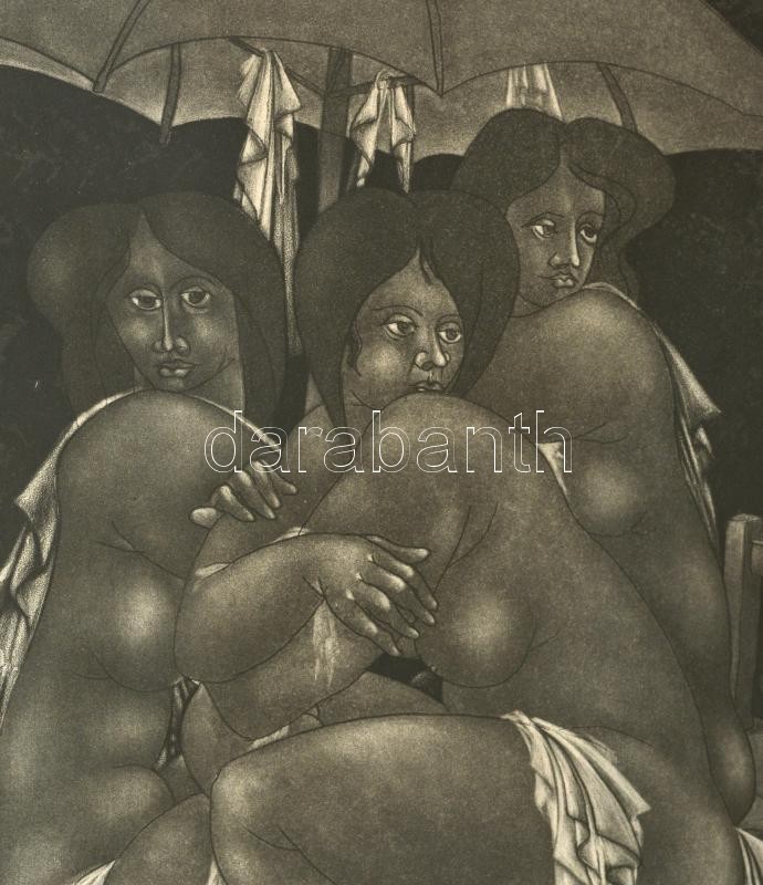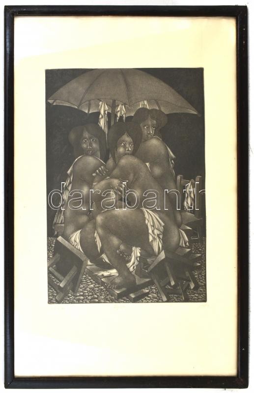 Leírás: Tot, Amerigo (1909-1984): Artisták. Mezzotinto, papír, jelzett és datált (Tot 80), számozott (23/100), üvegezett keretben, 39,5x29,5 cm