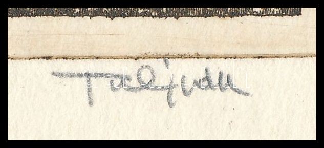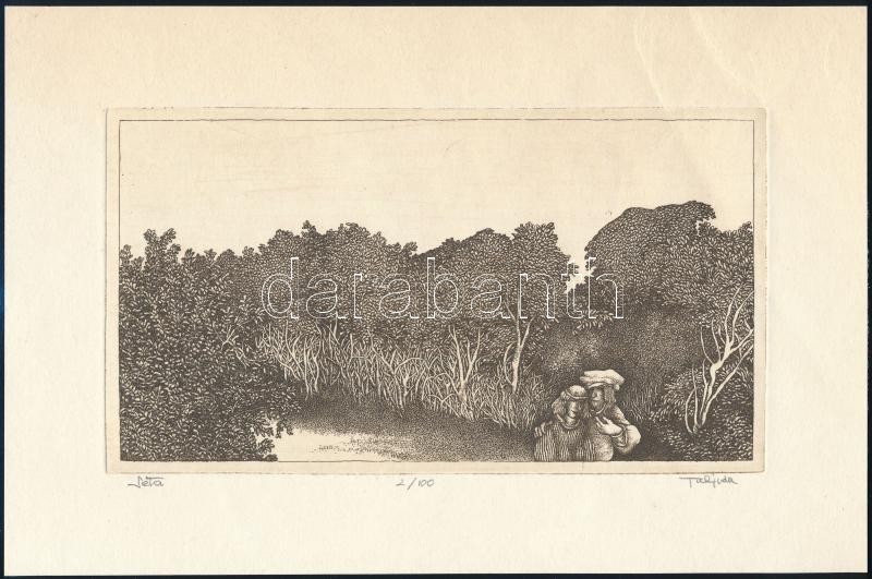 Leírás: Tulipán László (1943-2007): Séta. Rézkarc, papír, jelzett, számozott: 2/100, 10×18 cm