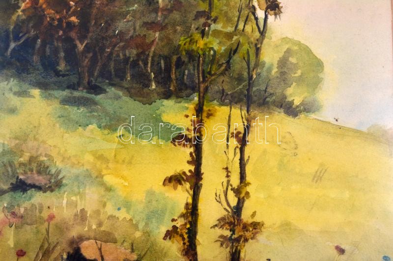 Leírás: Turmayer jelzéssel: Őszi táj. Akvarell, papír, üvegezett keretben, 31x23,5 cm