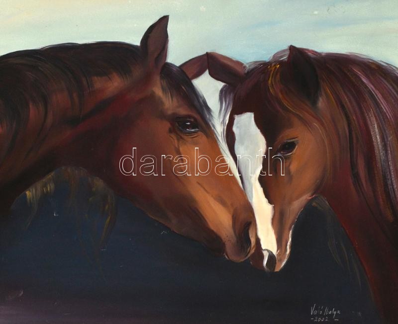 Való Ibolya (1958-): Lovak. Olaj, farost, jelzett, fa keretben, 39,5×4... https://www.darabanth.com/hu/374-Gyorsarveres/374.0/Festmenyek-es-grafikak/Festmenyek-es-grafikak~1/Valo-Ibolya-1958-Lovak-Olaj-farost-jelzett-fa-keretben-39-5C39748-5-cm~II2187811