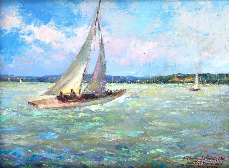 Wéber Gyula (?-?): Balatoni vitorlások. Ola, vászon, jelzett, ajándéko... https://www.darabanth.com/hu/374-Gyorsarveres/374.0/Festmenyek-es-grafikak/Festmenyek-es-grafikak~1/Weber-Gyula-Balatoni-vitorlasok-Ola-vaszon-jelzett-ajandekozasi-sorokkal-fa-keretb~II2184296