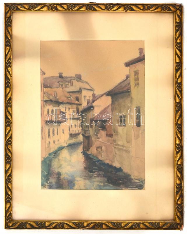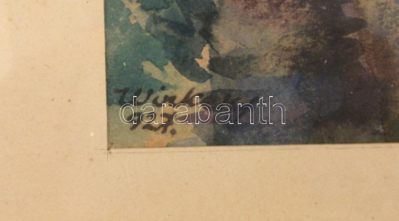 Leírás: Winkery (?) 927 jelzéssel: Miskolc. Akvarell, ceruza, papír, üvegezett fa keretben, 31x23 cm