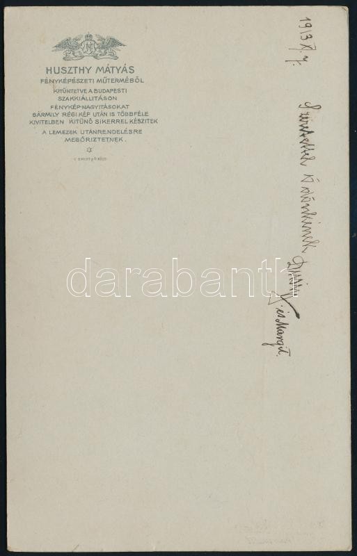 Leírás: 1913 Nagybánya, Huszthy Mátyás fényképész műtermében készült keményhátú vintage fotó, 10,3x16,3 cm