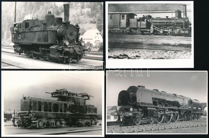 Leírás: Régi mozdonyok, 4 db modern előhívás, 9×12 és 9×14 cm közötti méretekben