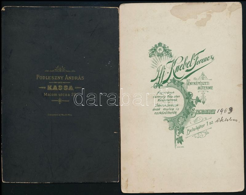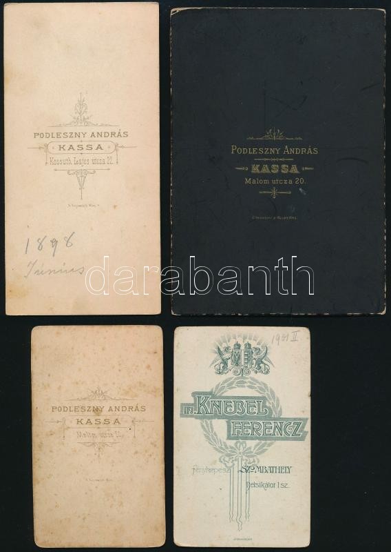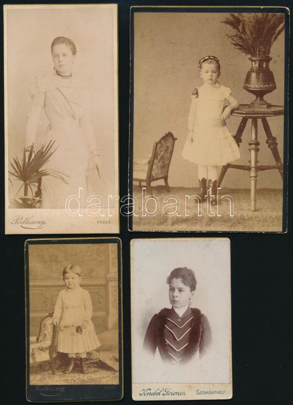 cca 1886-1903 8 db egy családról készült hölgy- és gyermekportré, vintage keményhátú fotó különböző műtermekből (Podleszny és özv. hegedűs Józsefné Kassa; Knebel Ferencz, Szombathely), részben feliratozott, 10x6 és 19x11 cm közötti méretekben