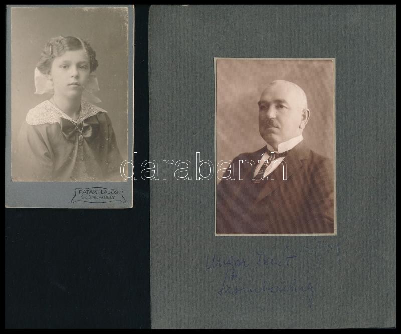 cca 1900-1913 4 db felnőtt és gyermekportré, vintage keményhátú fotó különböző műtermekből (Bokor Gyula Sopron, Hungária Budapest, Pataki Lajos Szombathely), részben feliratozott, egyik Unger Jenőt és lányát ábrázolja, 9x6 és 10x6 közötti méretekben