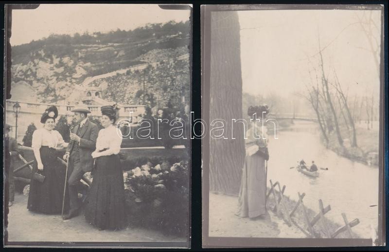 Leírás: cca 1900 Emberek kiránduló társaságok, tájak, 8 db fotó, 8×10 cm