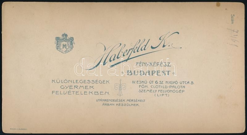 Leírás: cca 1900 Fiatal férfi díszmagyarban, keményhátú fotó Haberfeld budapesti műterméből, 21×11 cm