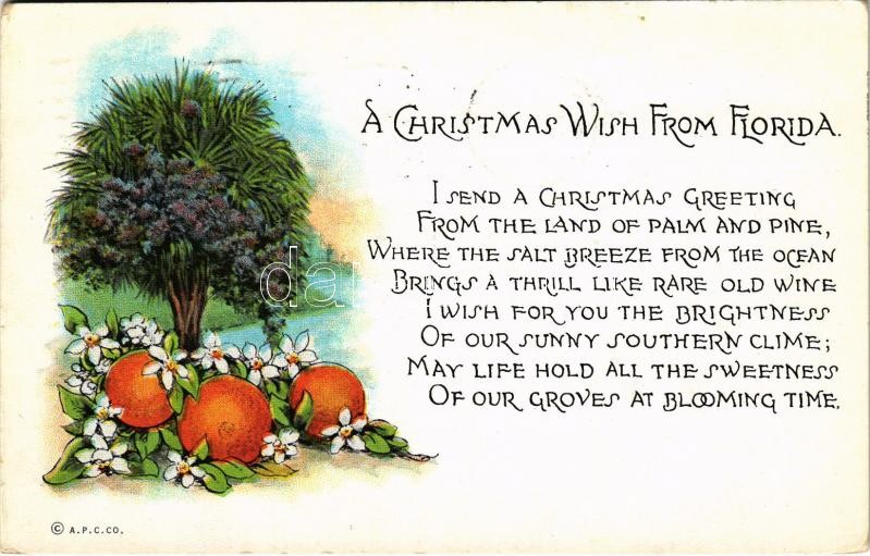 1926 Florida, Christmas Wish from Florida. Christmas greeting card wit... https://www.darabanth.com/hu/374-Gyorsarveres/374.0/Kepeslapok/Amerikai-Egyesult-Allamok~2000016/1926-Florida-Christmas-Wish-from-Florida-Christmas-greeting-card-with-oranges-EK~II2190018