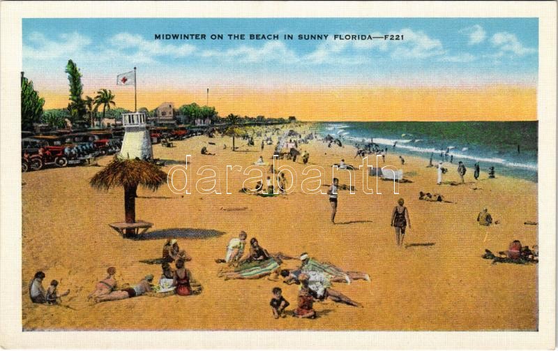 Florida, Midwinter on the beach in sunny Florida, sunbathing, bathers https://www.darabanth.com/hu/374-Gyorsarveres/374.0/Kepeslapok/Amerikai-Egyesult-Allamok~2000016/Florida-Midwinter-on-the-beach-in-sunny-Florida-sunbathing-bathers~II2190005