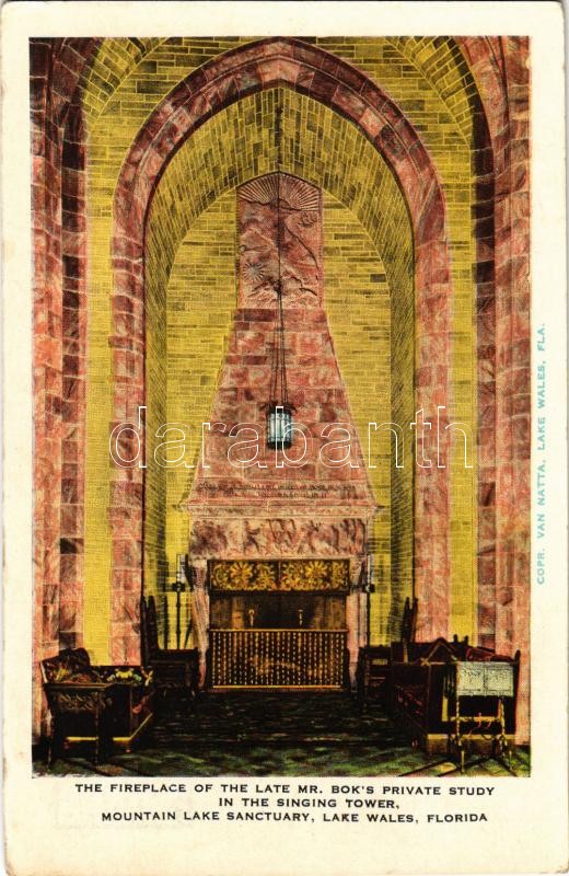 Lake Wales (Florida), Mountain Lake Sanctuary, The fireplace of the la... https://www.darabanth.com/hu/374-Gyorsarveres/374.0/Kepeslapok/Amerikai-Egyesult-Allamok~2000016/Lake-Wales-Florida-Mountain-Lake-Sanctuary-The-fireplace-of-the-late-Mr-Boks-private-study-in-~II2190008