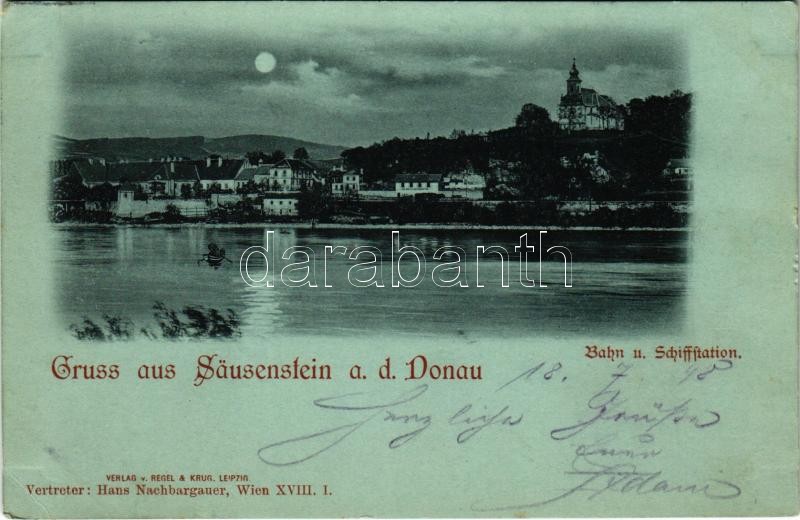 1898 Säusenstein (Ybbs an der Donau); Bahn u. Schiffstation, Joh. Holtz Restauration / railway station, ship station, restaurant. Verlag v. Regel & Krug (EK)
