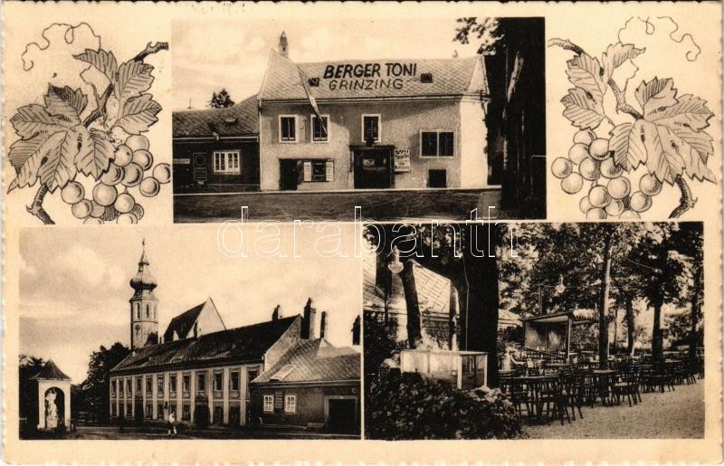 Leírás: 1938 Wien, Vienna, Bécs XIX. Grinzing, Höchster Heuriger Berger Toni. Himmelstrasse 29. / winery. Art Nouveau