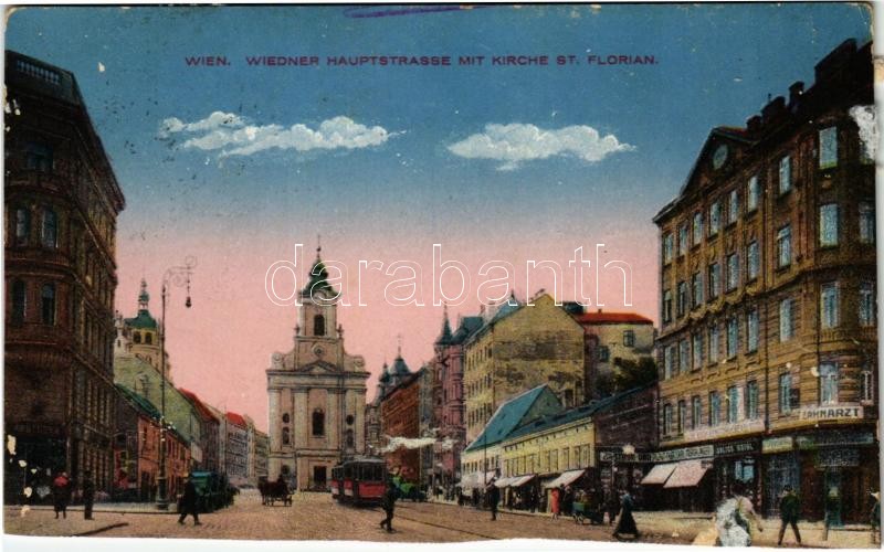 Wien, Vienna, Bécs; Wiedner Hauptstrasse mit Kirche St. Florian, Zahna... https://www.darabanth.com/hu/374-Gyorsarveres/374.0/Kepeslapok/Ausztria~2000017/Wien-Vienna-Becs-Wiedner-Hauptstrasse-mit-Kirche-St-Florian-Zahnarzt-main-street-church-sh~II2184373