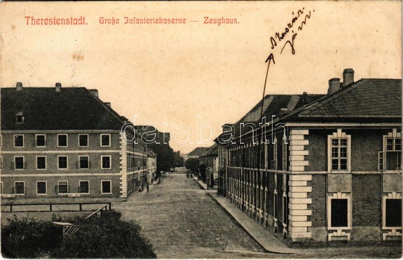 1912 Terezín, Theresienstadt; Große Infanteriekaserne, Zeughaus / K.u.... https://www.darabanth.com/hu/374-Gyorsarveres/374.0/Kepeslapok/Cseh-Koztarsasag~2000023/1912-Terezin-Theresienstadt-GroC39Fe-Infanteriekaserne-Zeughaus-KuK-military-infantry-barrack~II2186553