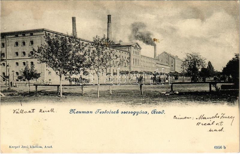 1900 Arad, Neuman Testvérek szeszgyára. Kerpel Izsó kiadása / distille... https://www.darabanth.com/hu/374-Gyorsarveres/374.0/Kepeslapok/Erdely~2000005/1900-Arad-Neuman-Testverek-szeszgyara-Kerpel-Izso-kiadasa-distillery-fl~II2192051