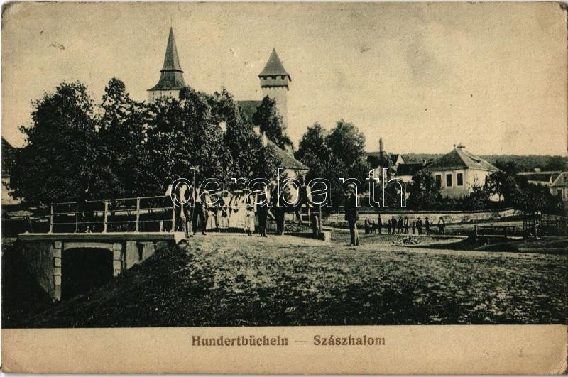 1914 Százhalom, Hundertbücheln, Hondrubechi, Movile; utcakép, híd, Eva... https://www.darabanth.com/hu/374-Gyorsarveres/374.0/Kepeslapok/Erdely~2000005/1914-Szazhalom-Hundertbucheln-Hondrubechi-Movile-utcakep-hid-Evangelikus-erodtemplom-s~II1984398