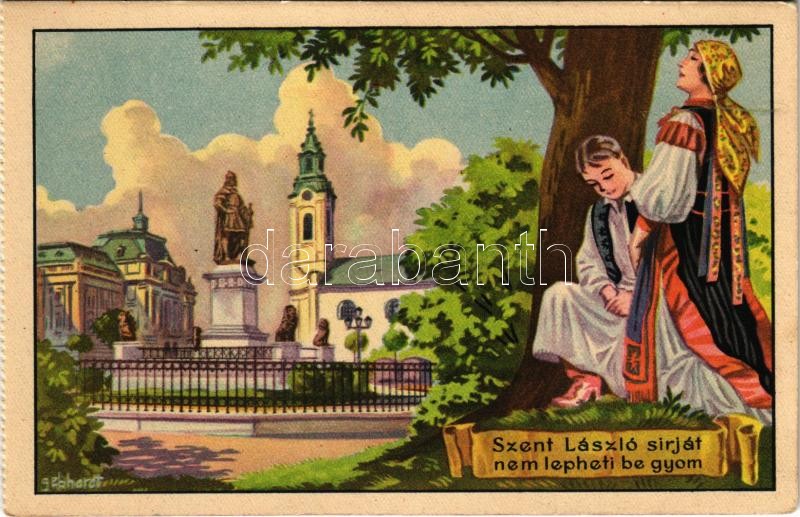 Nagyvárad, Oradea; "Szent László sírját nem lepheti be gyom." Kiadja a Székely Egyetemi és Főiskolai Hallgatók Egyesülete / Hungarian irredenta art postcard s: Gebhardt - képeslapfüzetből / from postcard booklet