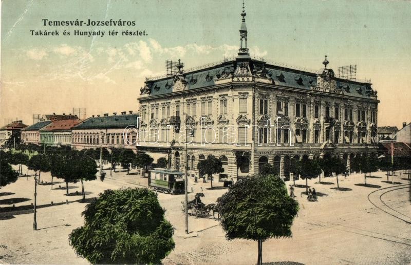 Temesvár, Timisoara; Józsefváros, Takarékpénztár és Hunyadi tér, villa... https://www.darabanth.com/hu/374-Gyorsarveres/374.0/Kepeslapok/Erdely~2000005/Temesvar-Timisoara-Jozsefvaros-Takarekpenztar-es-Hunyadi-ter-villamos-savings-bank-sq~II1654324