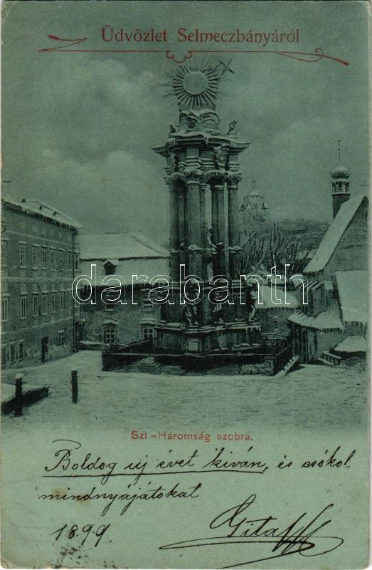 1899 Selmecbánya, Banská Stiavnica; Szentháromság szobor télen / Holy ... https://www.darabanth.com/hu/374-Gyorsarveres/374.0/Kepeslapok/Felvidek~2000006/1899-Selmecbanya-Banska-Stiavnica-Szentharomsag-szobor-telen-Holy-Trinity-statue-in-winter-~II2191675