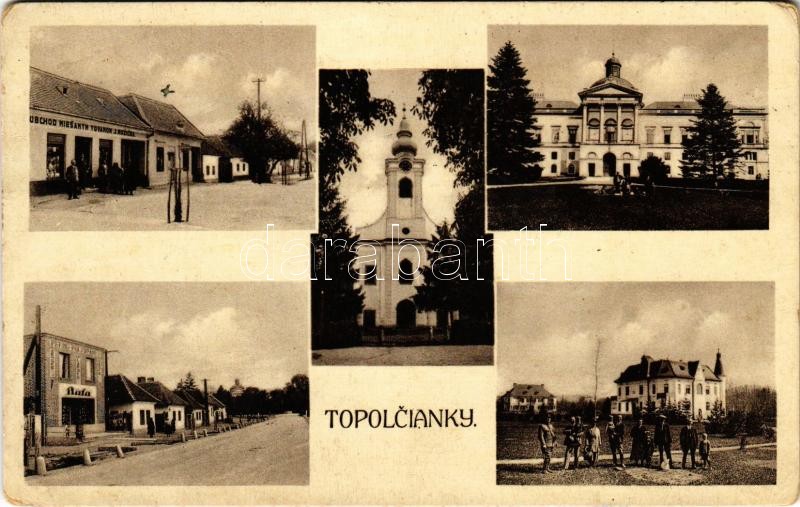 1933 Kistapolcsány, Topolcianky; kastély, templom, Bata és J. Ruzicka ... https://www.darabanth.com/hu/374-Gyorsarveres/374.0/Kepeslapok/Felvidek~2000006/1933-Kistapolcsany-Topolcianky-kastely-templom-Bata-es-J-Ruzicka-uzlete-castle-church-s~II2185051