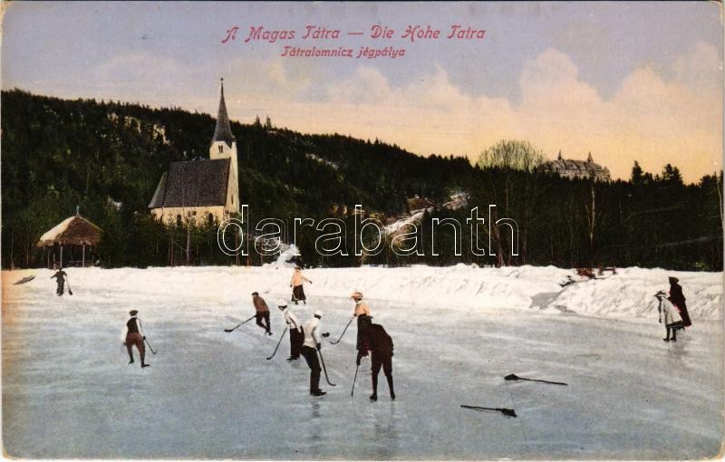 Tátralomnic, Tatranská Lomnica (Tátra, Magas Tátra, Vysoké Tatry); jég... https://www.darabanth.com/hu/374-Gyorsarveres/374.0/Kepeslapok/Felvidek~2000006/Tatralomnic-Tatranska-Lomnica-Tatra-Magas-Tatra-Vysoke-Tatry-jegpalya-teli-sport-je~II2191697