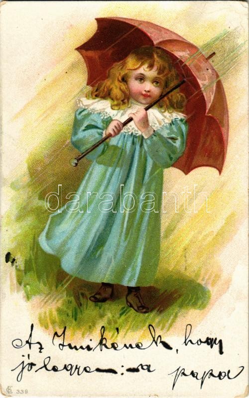 1900 Girl with umbrella. E.G. 339. litho (Rb) https://www.darabanth.com/hu/374-Gyorsarveres/374.0/Kepeslapok/Gyerek~2000074/1900-Girl-with-umbrella-EG-339-litho-Rb~II2186577