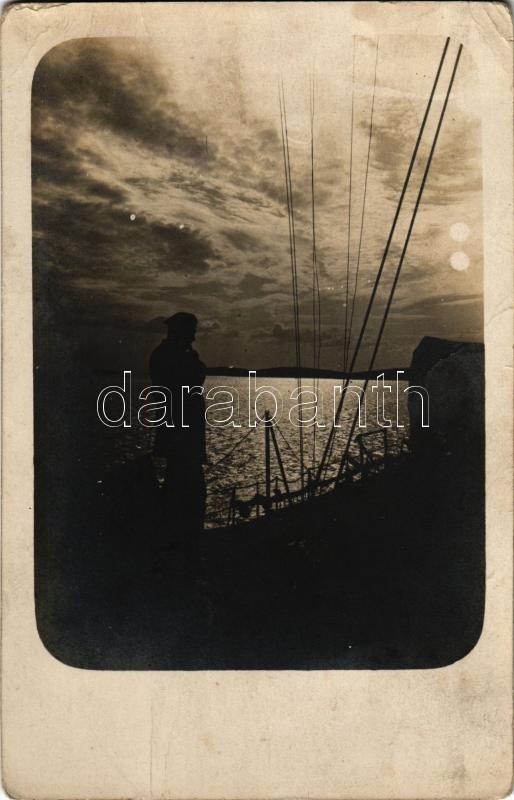 Leírás: 1916 Alkonyatkor / WWI Austro-Hungarian Navy, K.u.K. Kriegsmarine, mariner on board at nightfall. photo (EK)