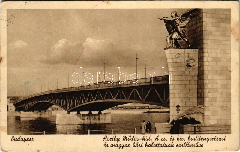 Budapest, Horthy Miklós híd, a Császári és Királyi haditengerészet és magyar hősi halottainak emlékműve, villamos / Memorial monument of the hero mariners of K.u.K. Kriegsmarine (Austro-Hungarian Navy) (Rb)