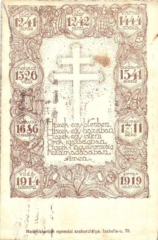 Leírás: Hiszekegy. Hadirokkantakat Foglalkoztató és Gyámolító Szövetkezet Iparművészeti osztálya / Hungarian irredenta, Hungarian history timeline (EK)