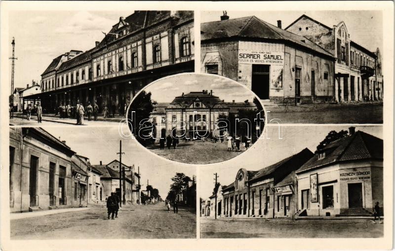 Leírás: Csap, Chop; Vasútállomás, Pályaudvar, Sermer Sámuel, Kazinczy Sándor üzlete, utcakép / Bahnhof / railway station, shops, street view