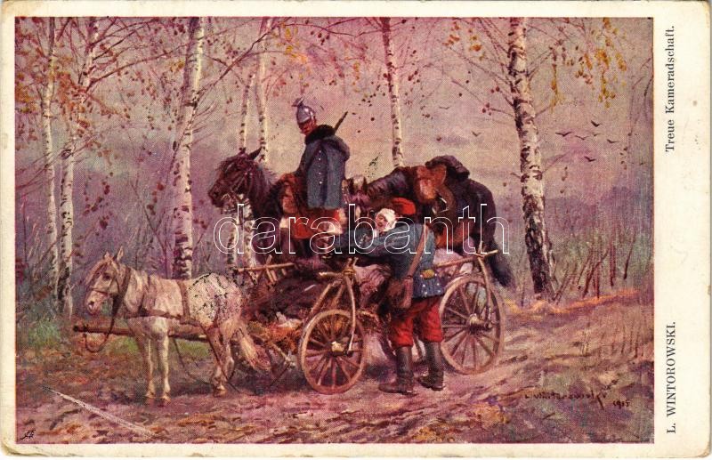 1916 Treue Kameradschaft / WWI K.u.K. (Austro-Hungarian) military art ... https://www.darabanth.com/hu/374-Gyorsarveres/374.0/Kepeslapok/Katonai~2000083/1916-Treue-Kameradschaft-WWI-KuK-Austro-Hungarian-military-art-postcard-WRB-Co-Nr-230~II2192802