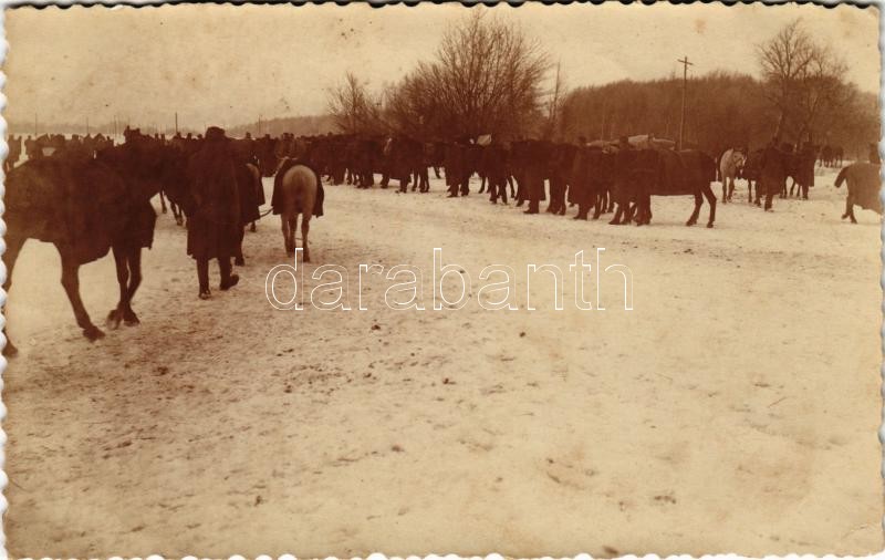 Leírás: 1917 Jassionov (Galícia), 34. gyalogezred trén lóvizsga / WWI K.u.K. military, horse exam in winter. photo (EK)