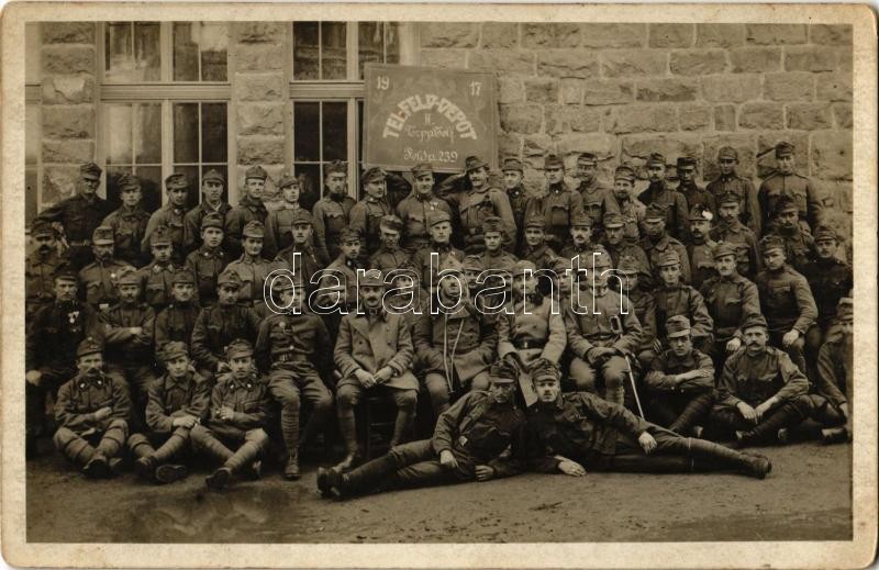 1917 Tel.-Feld.-Depot II. Trpp. Telf. Feldp. 239. / WWI K.u.K. (Austro... https://www.darabanth.com/hu/374-Gyorsarveres/374.0/Kepeslapok/Katonai~2000083/1917-Tel-Feld-Depot-II-Trpp-Telf-Feldp-239-WWI-KuK-Austro-Hungarian-military-telegrap~II2130546
