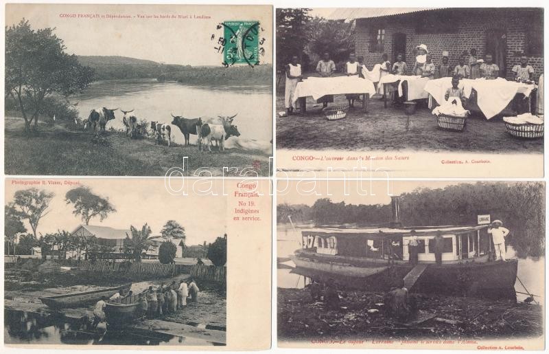 Leírás: 40 db RÉGI külföldi városképes lap: Francia-Kongó / 40 pre-1945 African town-view postcards: French Congo