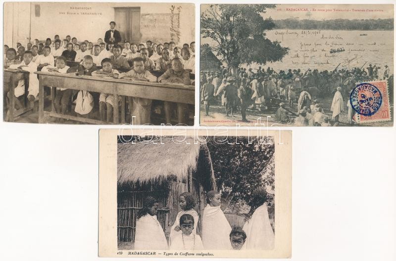 Leírás: 40 db RÉGI külföldi városképes lap: Madagaszkár / 40 pre-1945 Madagascarian town-view postcards