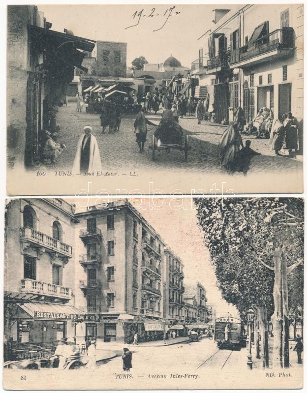 Leírás: 40 db RÉGI külföldi városképes lap: Tunézia / 40 pre-1945 African town-view postcards: Tunisia