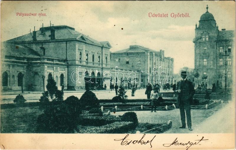 1906 Győr, Pályaudvar, vasútállomás. Berecz Viktor kiadása https://www.darabanth.com/hu/374-Gyorsarveres/374.0/Kepeslapok/Magyarorszag~2000004/1906-Gyor-Palyaudvar-vasutallomas-Berecz-Viktor-kiadasa~II2187706