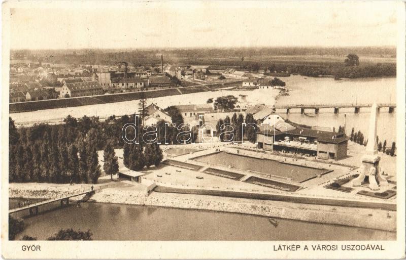 1934 Győr, látkép a városi uszodával, híd https://www.darabanth.com/hu/374-Gyorsarveres/374.0/Kepeslapok/Magyarorszag~2000004/1934-Gyor-latkep-a-varosi-uszodaval-hid~II2106990
