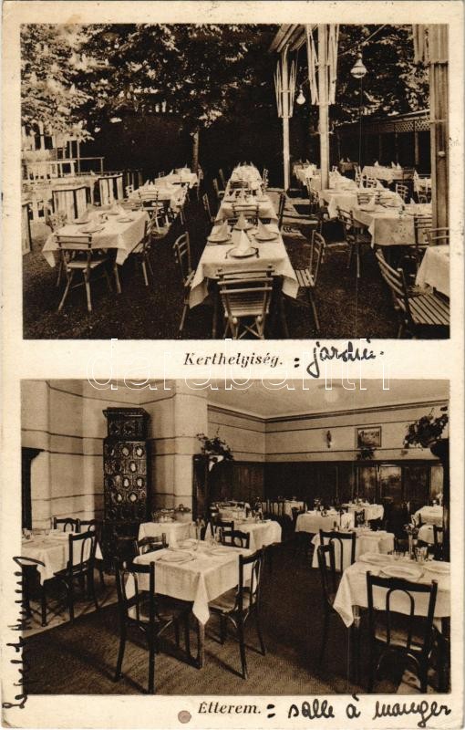 Leírás: Budapest I. Havas József vendéglője A szederfához, kerthelyiség, étterem belső. Kiadja Klein Ernő