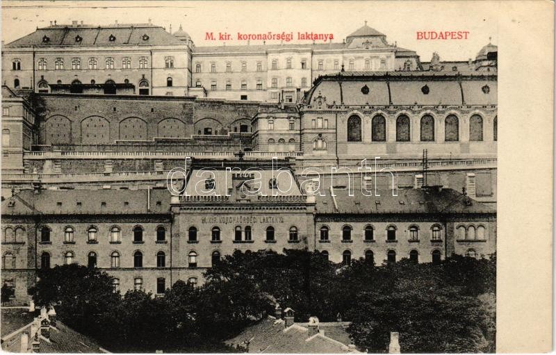 Budapest I. Királyi vár (Krisztinavárosi oldal), M. kir. Koronaőrségi ... https://www.darabanth.com/hu/374-Gyorsarveres/374.0/Kepeslapok/Magyarorszag~2000004/Budapest-I-Kiralyi-var-Krisztinavarosi-oldal-M-kir-Koronaorsegi-laktanya~II2191989
