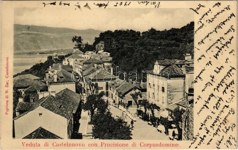 Leírás: 1905 Herceg Novi, Castelnuovo; Con Procisione di Corpusdomine / Corpus Christi procession + "K.u.K. Milit. Post Bilek"