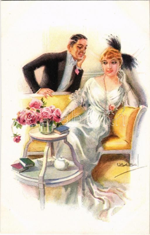 1920 Romantic couple. Italian lady art postcard. "ERKAL" No.... https://www.darabanth.com/hu/374-Gyorsarveres/374.0/Kepeslapok/Muveszlapok~2000089/1920-Romantic-couple-Italian-lady-art-postcard-ERKAL-No-3182-s-Usabal~II2184906